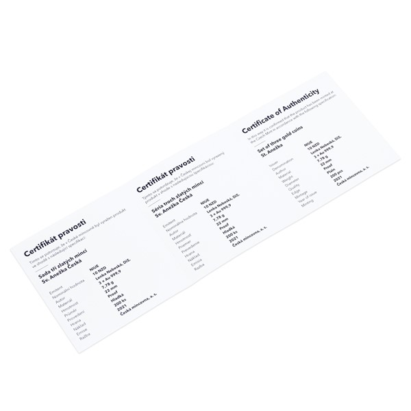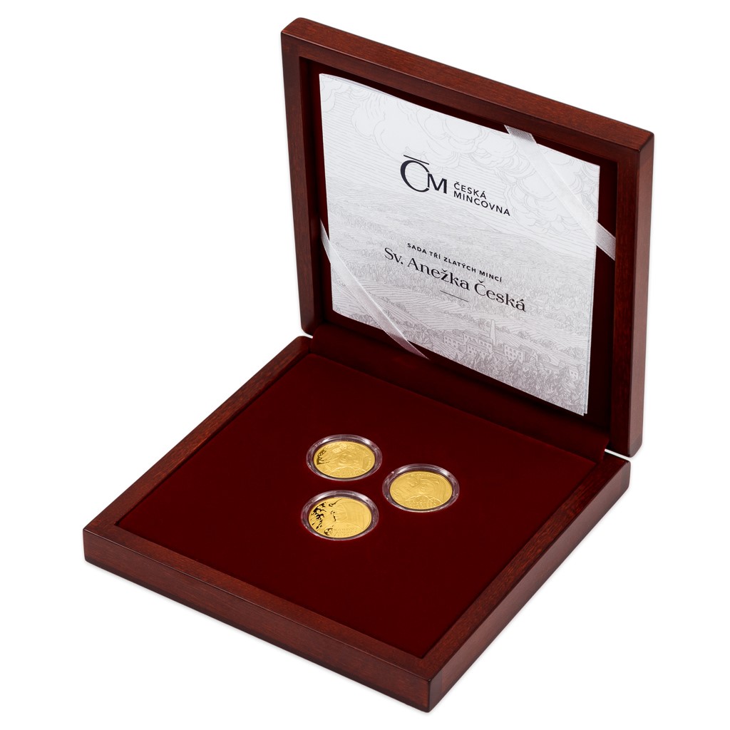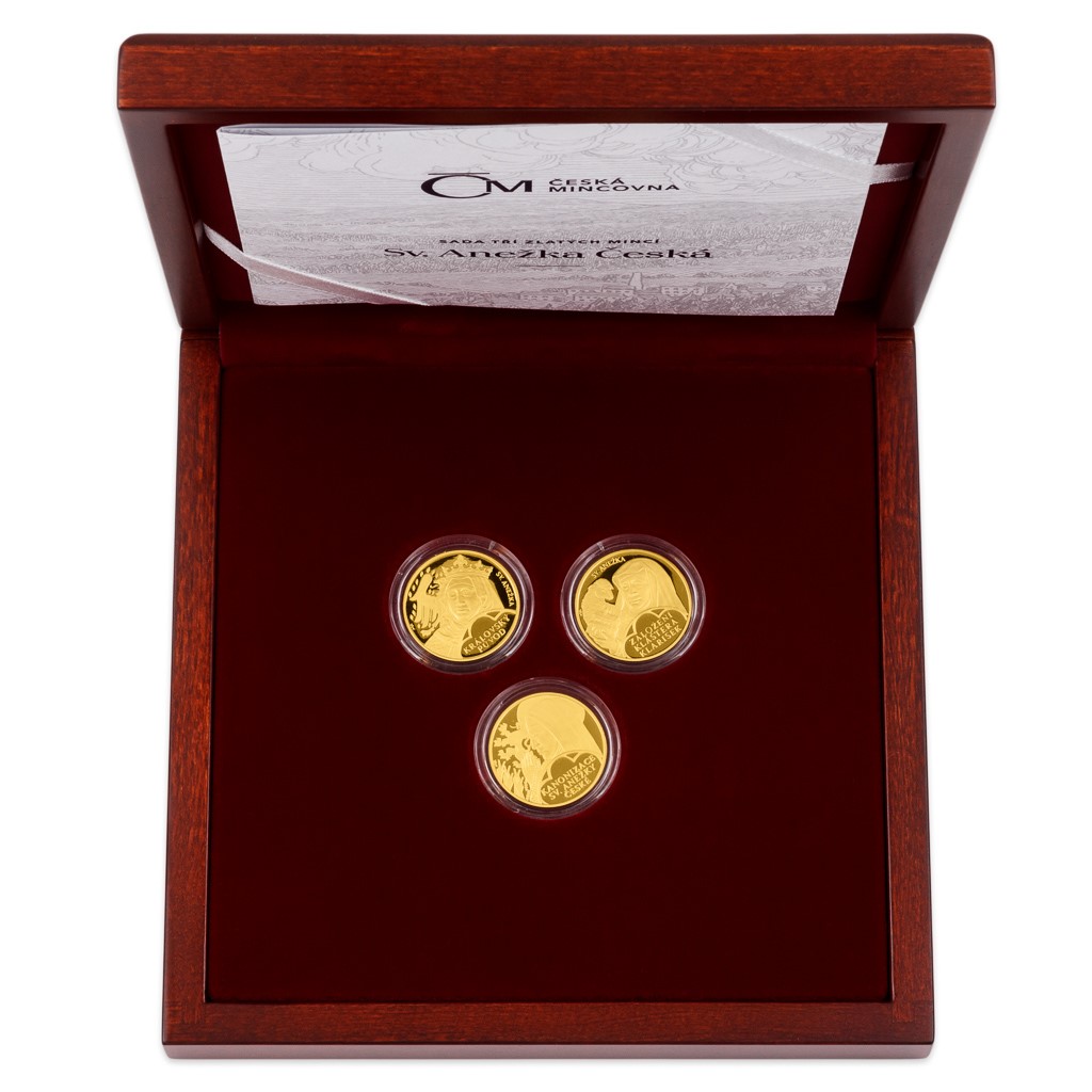 Sada tří zlatých mincí Sv. Anežka Česká proof