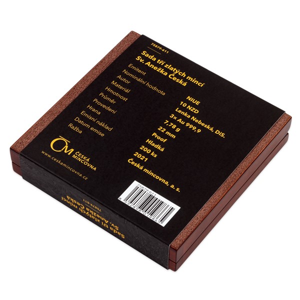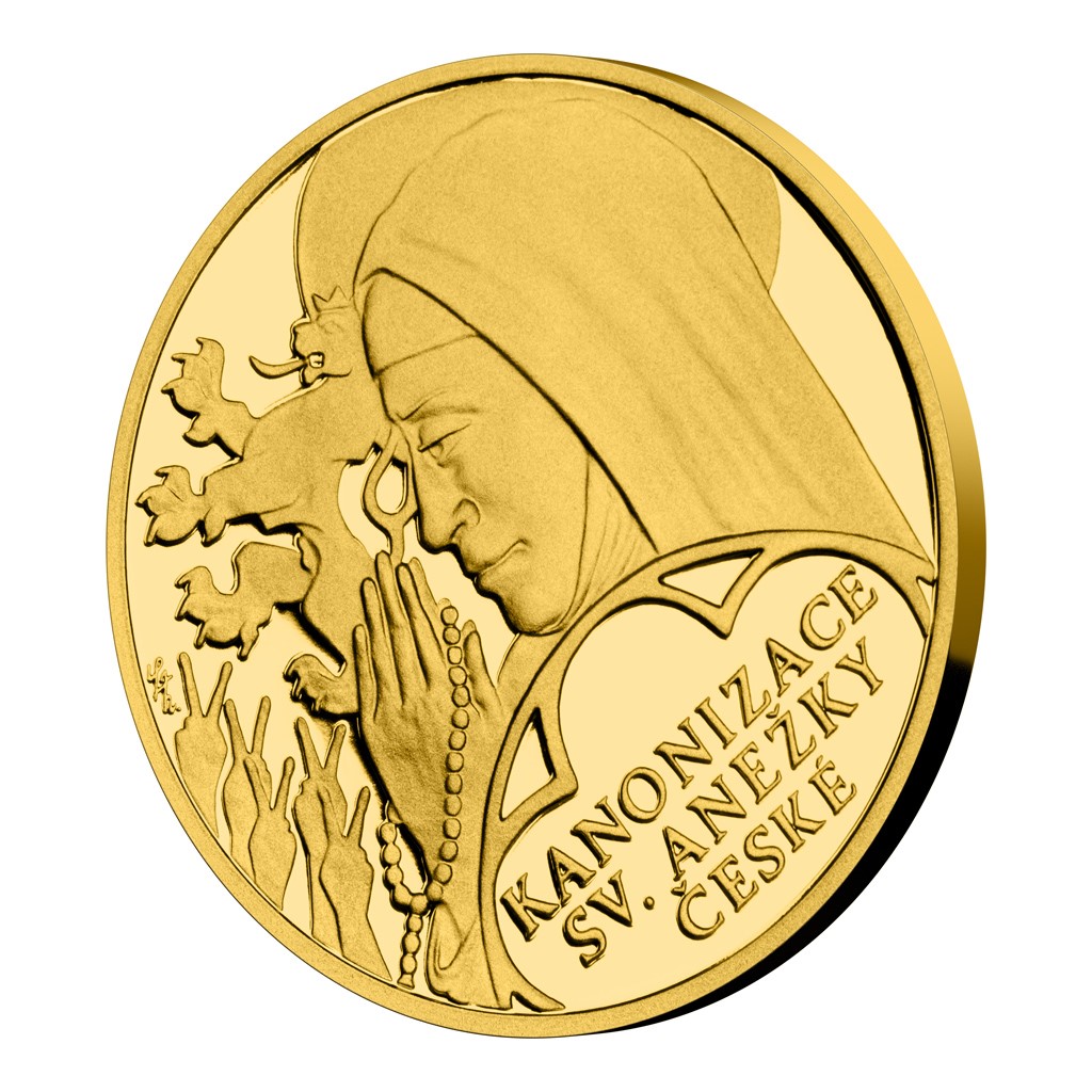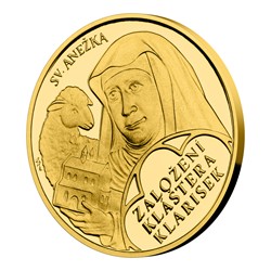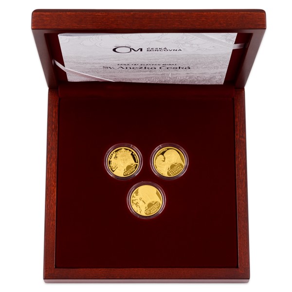Po svatém Janu Nepomuckém a svaté Ludmile vzdává trojice zlatých mincí České mincovny hold dalšímu náboženskému symbolu naší vlasti – svaté Anežce České.