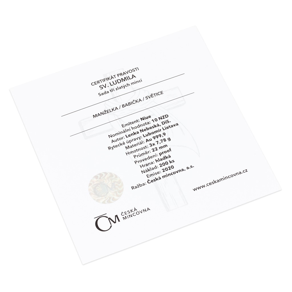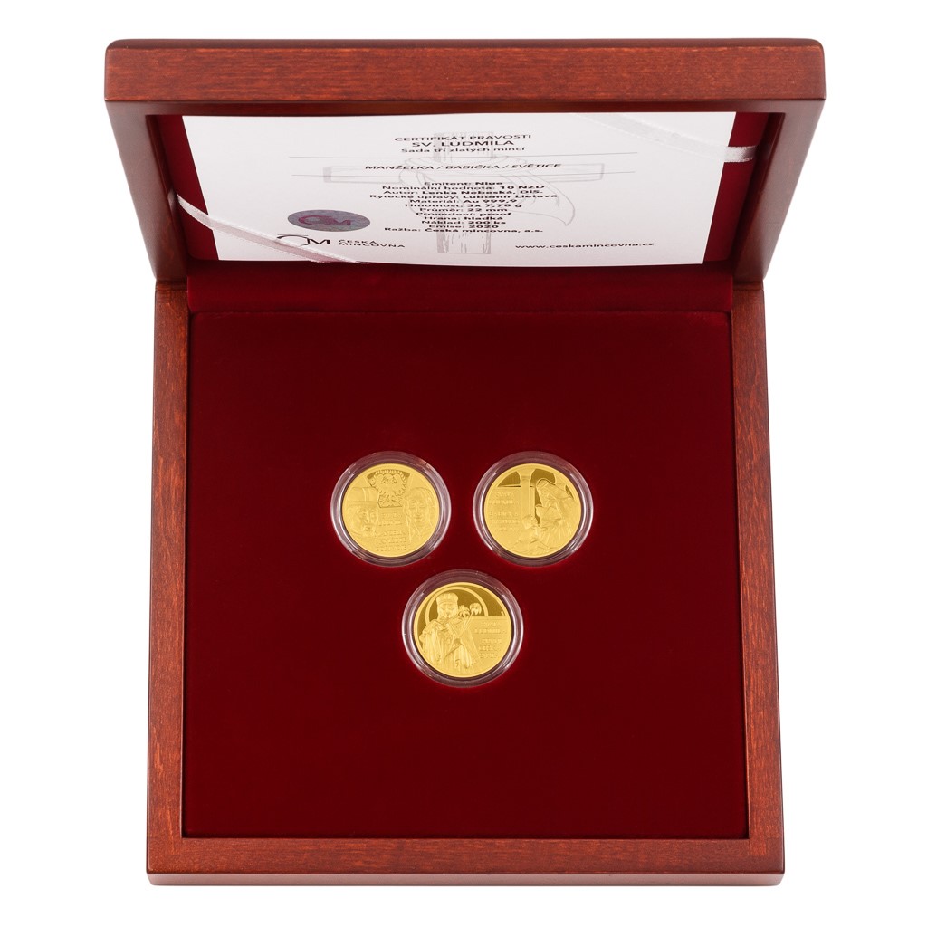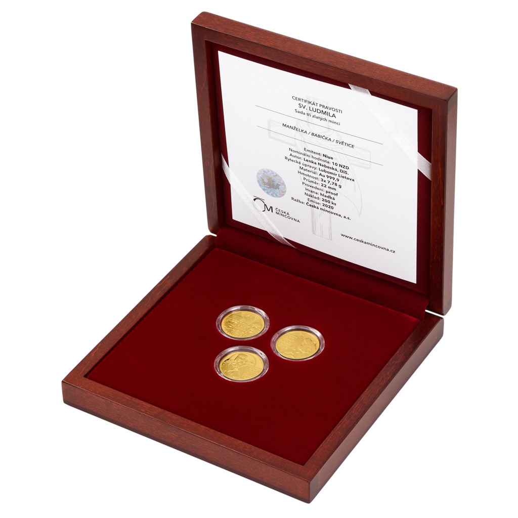 Po svatém Janu Nepomuckém vzdává trojice zlatých mincí České mincovny hold dalšímu náboženskému symbolu naší vlasti – svaté Ludmile.