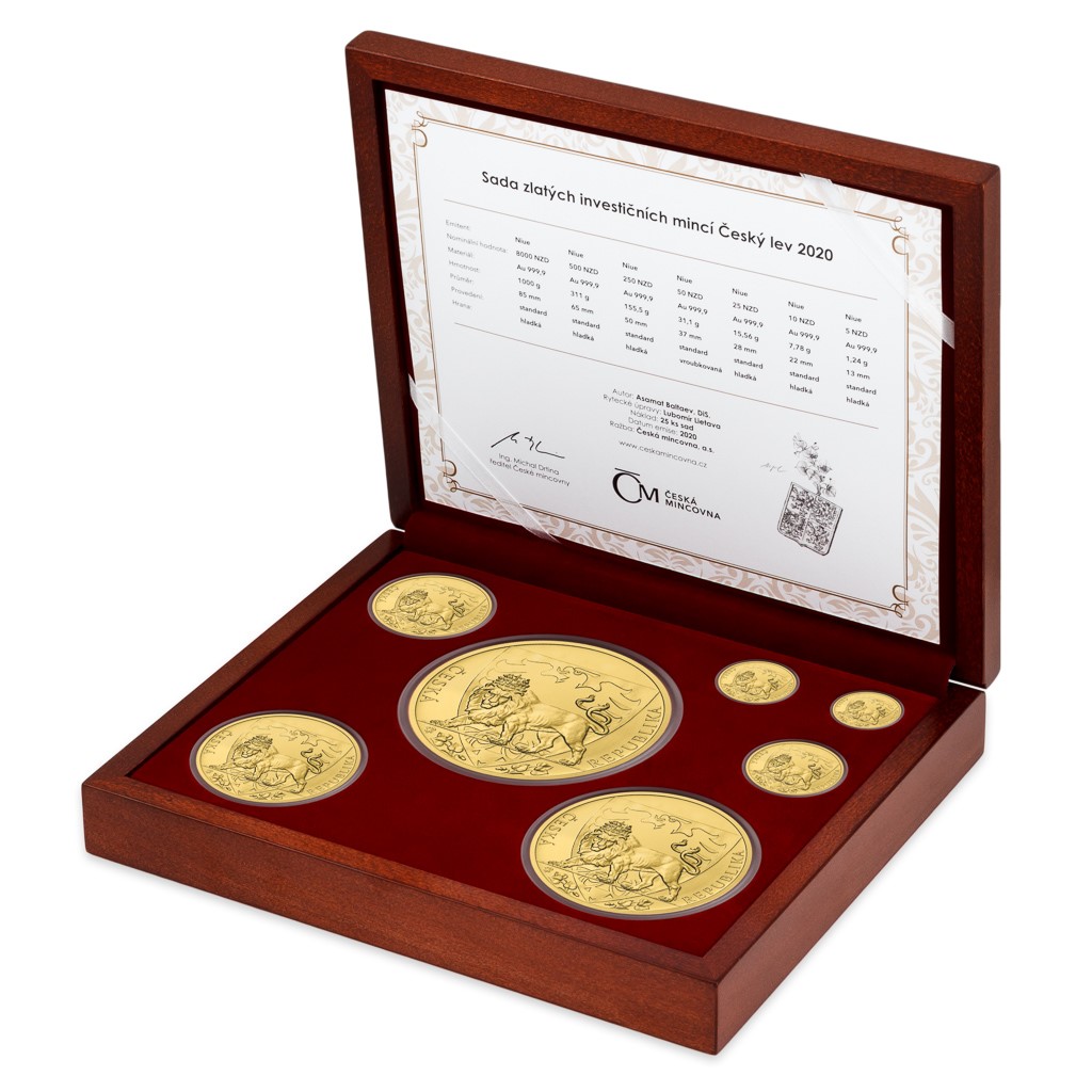 „Čeští lvi“ – řada investičních mincí ražených v České mincovně pod zahraniční licencí – se představili v roce 2017 a od té doby se s velkým úspěchem zařadili po bok svých slavných světových protějšků. Vycházejí v řadě variant a v luxusní sadě s ročníkem 2020 najdete ucelený komplet sedmi zlatých ražeb nejrůznějších hmotností.