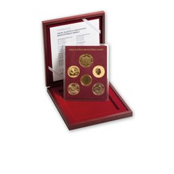 Sada zlatých uncových investičních mincí v dřevěné etui