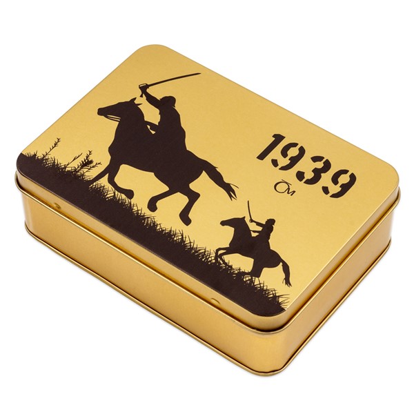 Ilustrace na víčku krabičky nese siluety polských hulánů – druhá světová válka byla totiž posledním konfliktem, do kterého ještě zasáhla koňská jízda. Válečný výjev je doplněn výročním letopočtem 1939 a značkou České mincovny.