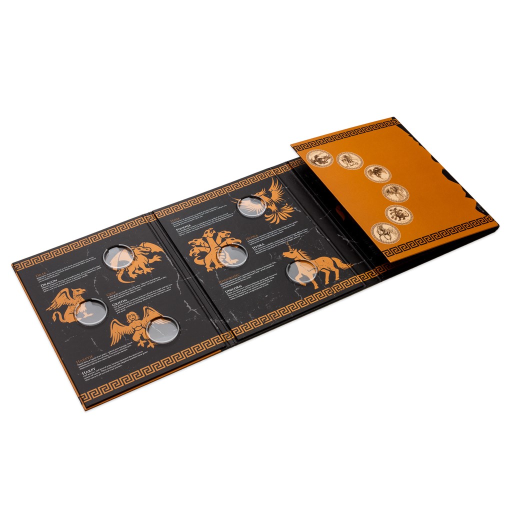 Kompletní sbírku mincí si můžete uložit do této výpravné sběratelské knihy stylizované do podoby antické amfory, která vám v češtině a angličtině přiblíží význam jednotlivých bájných tvorů.