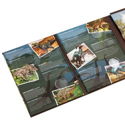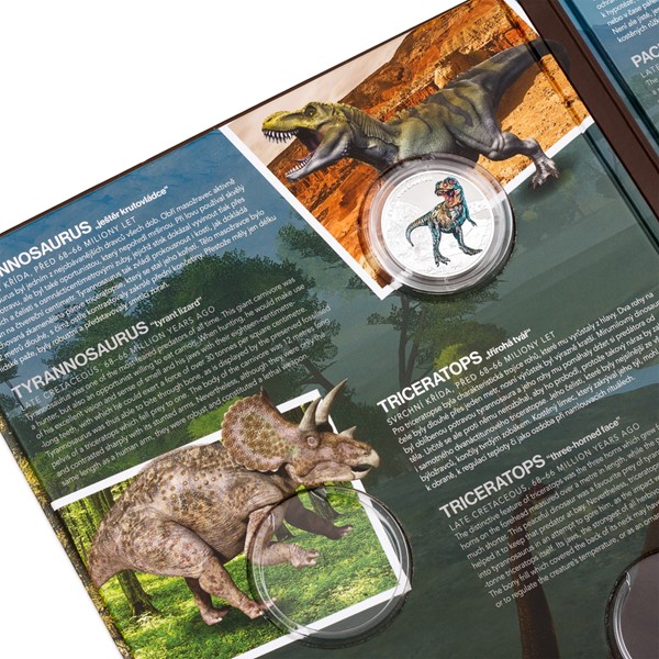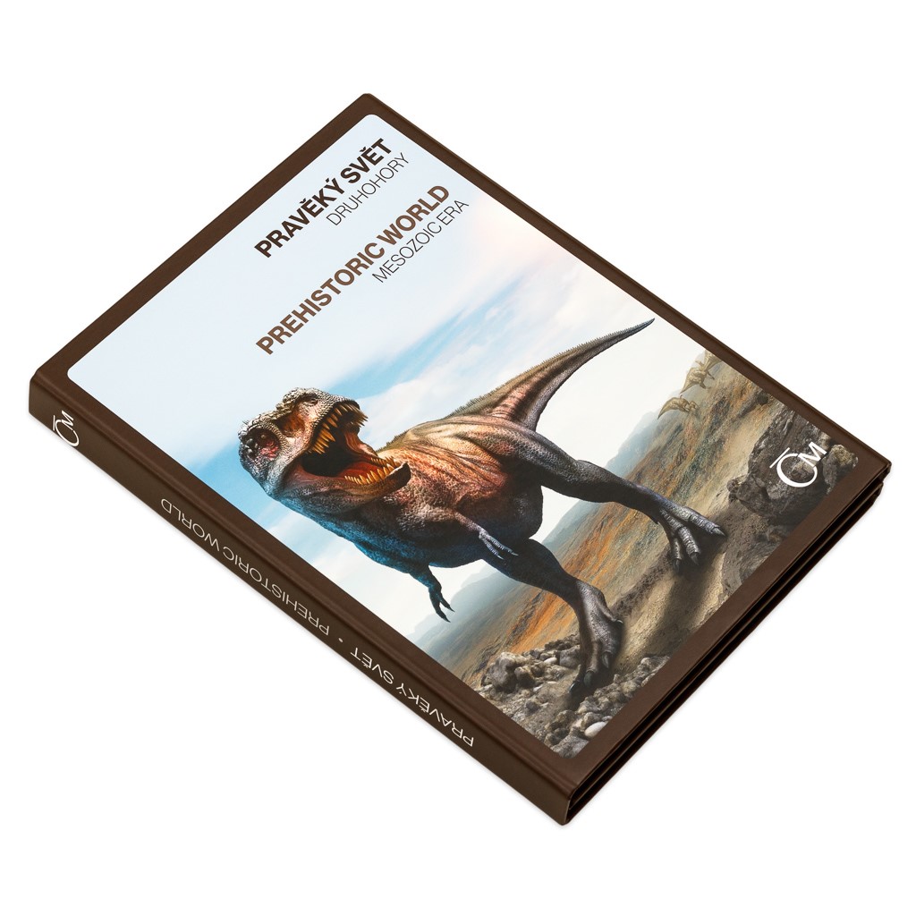 Dvanáctidílná série pamětních mincí České mincovny s názvem Pravěký svět představuje podivuhodnou říši druhohorních ještěrů – nejen dinosaurů, kteří byli vládci souše, ale také jejich příbuzných, kteří si podmanili moře a vzduch. Roztodivní tvorové všech tvarů a velikostí vymizeli ze světa před 66 miliony let a zbyly po nich jenom staré kosti a palčivé otázky. Jak vypadali? Čím se živili? Jak se dorozumívali? Jak bojovali? Jak pečovali o mláďata?