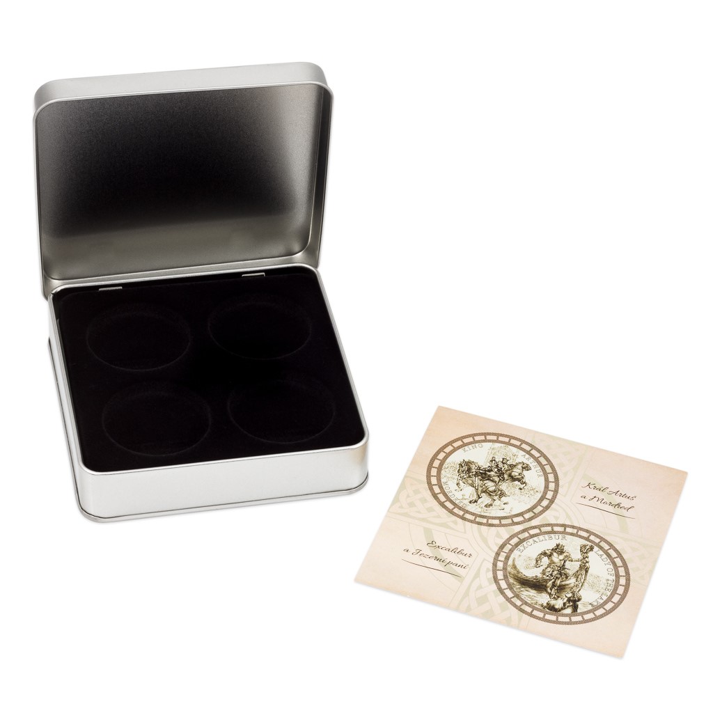 Sběratelská plechová etue na čtyři stříbrné mince "Legenda o králi Artušovi"
