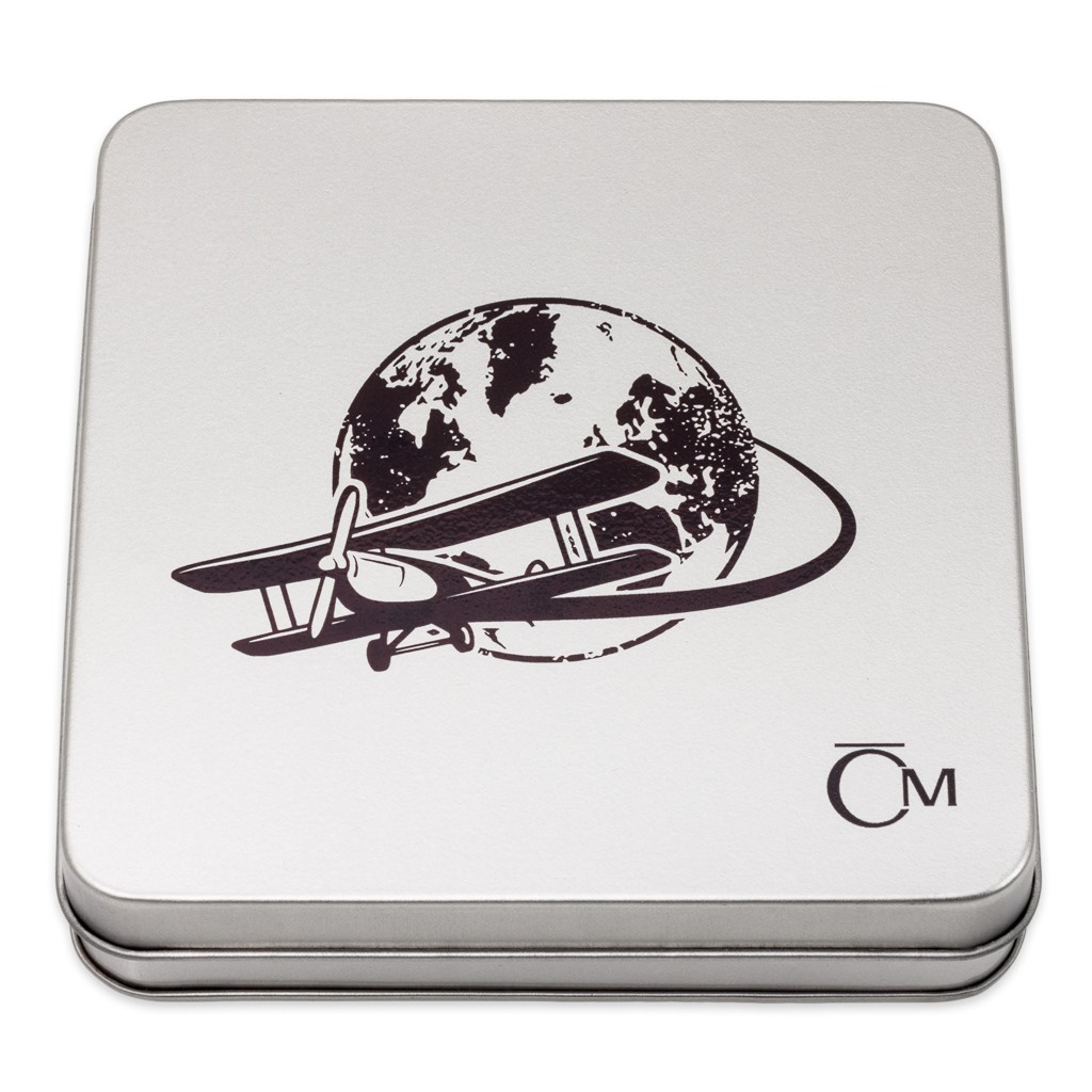 Jednotlivé emise si můžete postupně ukládat do plechové sběratelské etue stříbrné barvy. Její víčko je opatřeno pantem a nese stylizovanou ilustraci dvouplošníku – typu letounu, který je synonymem počátků létání – kroužícího okolo zeměkoule.