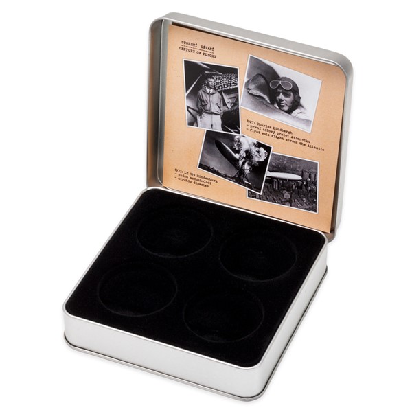 Sběratelská plechová etue na čtyři stříbrné mince Století létání