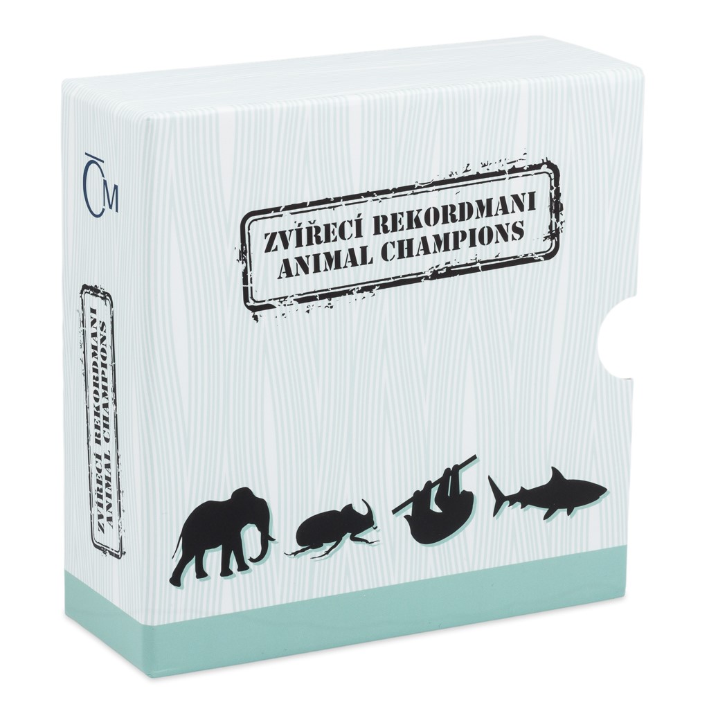 Na stříbrných mincích zkrášlených patinou z cyklu České mincovny s názvem Zvířecí rekordmani se postupně objeví ti nejlepší živočichové z nejlepších. Jejich výkony a úspěchy jsou vskutku rekordní a ty lidské vedle nich vypadají nicotně.