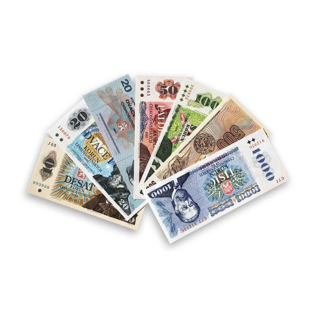 Série 7 ks československých bankovek 1970 - 1989