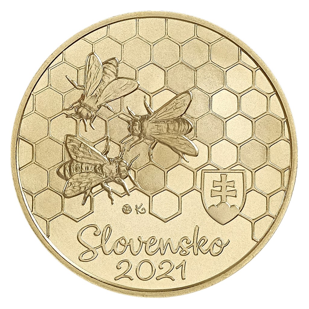 První emise z nového cyklu pamětních euromincí, který je věnovaný slovenské fauně a flóře, připomíná včelu medonosnou.