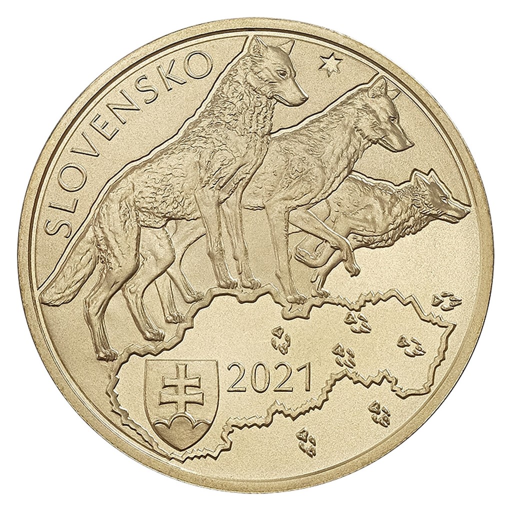 Druhá emise z nového cyklu pamětních euromincí, který je věnovaný slovenské fauně a flóře, připomíná vlka obecného.
