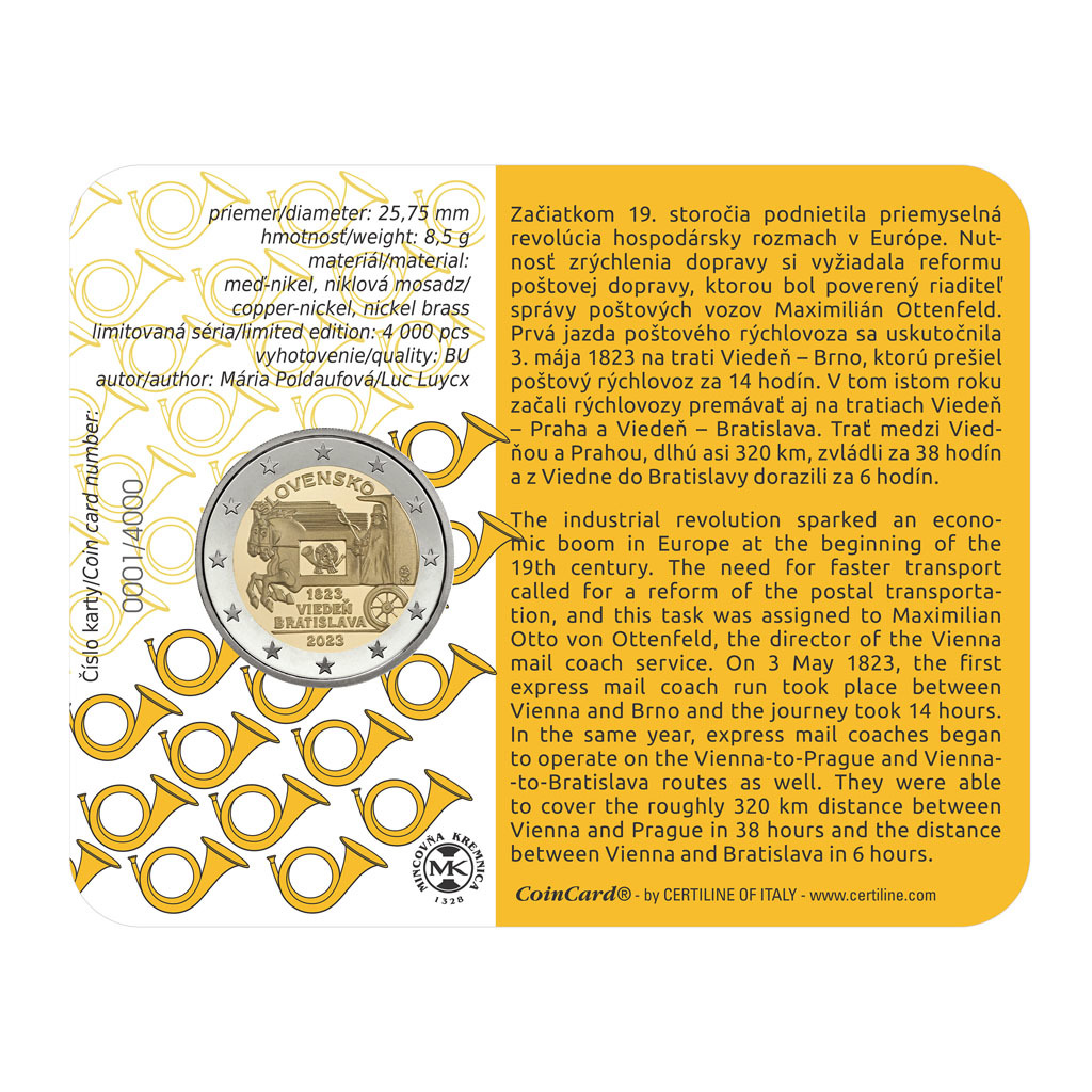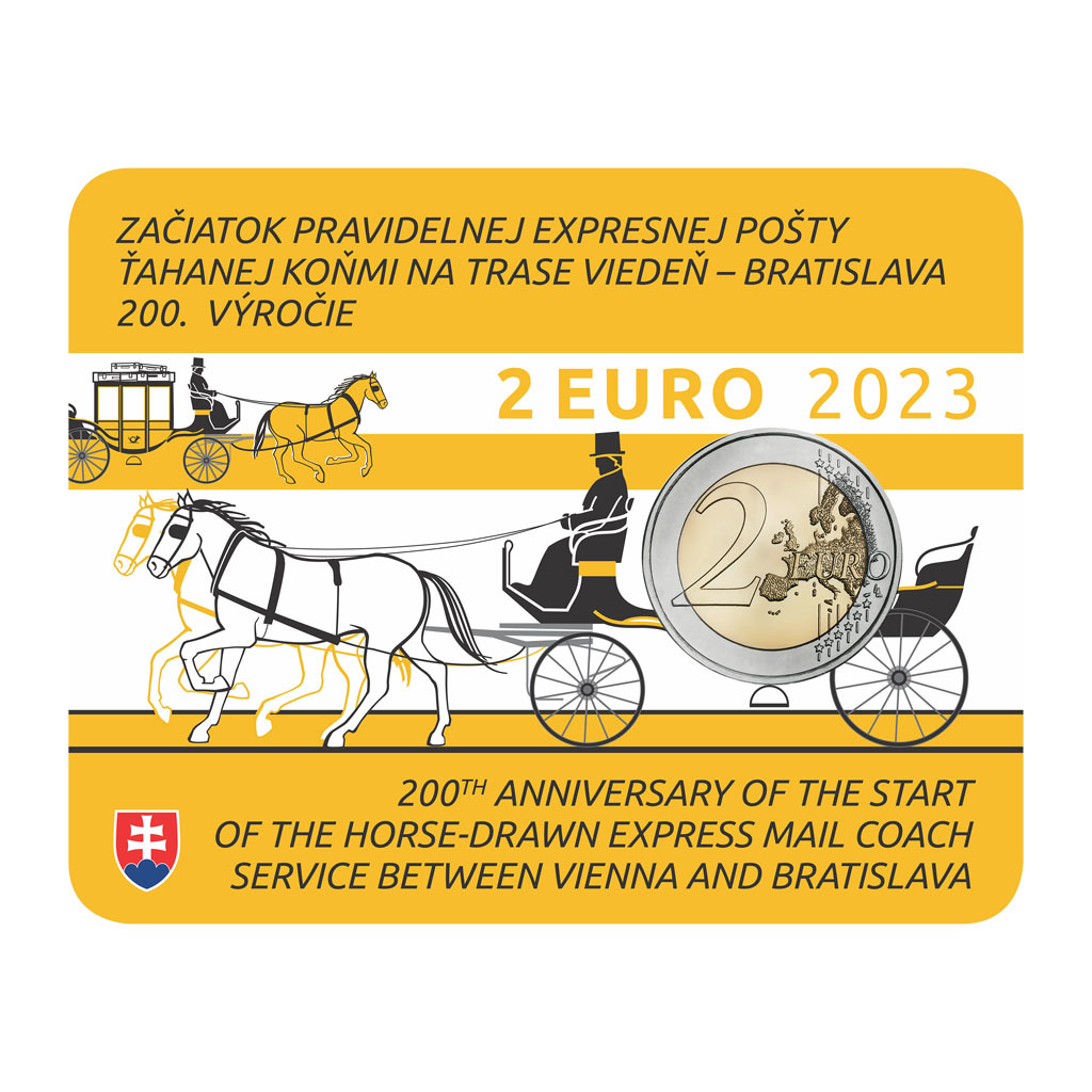 Slov. sběratelská karta 2 EUR 2023 - 200.výročí koňské pošty Vídeň-Bratislava proof like