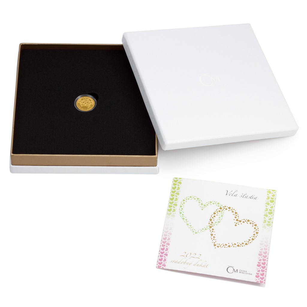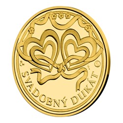 Zlatý svatební dukát České mincovny ve slovenské variantě je vkusným darem pro novomanžele, který v sobě spojuje originální symboliku, hodnotu drahého kovu a citovou hodnotu v podobě vyrytého věnování.