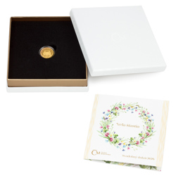 Srdečné věnování můžete vepsat i do certifikátu pravosti, který je součástí dárkového balení. Nepřehlédněte ani další varianty svatebního penízku – v naší nabídce na rok 2024 najdete dva různé drahé kovy i varianty bez vyrytého věnování.