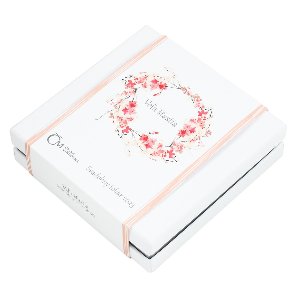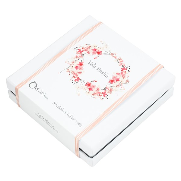Dárkové balení obsahuje vedle tolaru také certifikát pravosti s prostorem pro vepsání osobního věnování. Nepřehlédněte ani další varianty svatebního penízku – v naší nabídce na rok 2023 najdete dva různé drahé kovy i verze, na které lze vyrýt věnování.