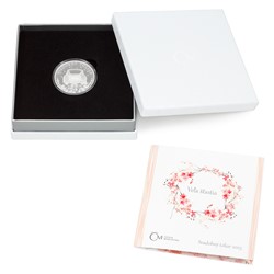 Srdečné věnování můžete vepsat i do certifikátu pravosti, který je součástí dárkového balení. Nepřehlédněte ani další varianty svatebního penízku – v naší nabídce na rok 2023 najdete dva různé drahé kovy i varianty bez vyrytého věnování.