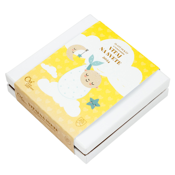 Pro každou kulturu na světě je narození dítěte důvodem k oslavě a ta naše není výjimkou. S oslavami je spojena řada rituálů včetně předávání darů novorozeněti. Taková pozornost může mít rozličnou podobu, ale tradičním darem je od nepaměti peníz z drahého kovu – například tento zlatý dukát České mincovny ve slovenské verzi, na který lze vyrýt věnování. Talisman v podobě mince dostávalo děťátko v rodinách urozených šlechticů, bohatých měšťanů i chudých venkovanů. Vzácná pozornost se stala první investicí do jeho budoucnosti, kterou pro něj rodiče opatrovali až do dospělosti.
