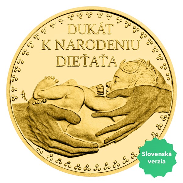 Pro každou kulturu na světě je narození dítěte důvodem k oslavě a ta naše není výjimkou. S oslavami je spojena řada rituálů včetně předávání darů novorozeněti. Taková pozornost může mít rozličnou podobu, ale tradičním darem je od nepaměti peníz z drahého kovu – například tento zlatý dukát České mincovny ve slovenské verzi, na který lze vyrýt věnování. Talisman v podobě mince dostávalo děťátko v rodinách urozených šlechticů, bohatých měšťanů i chudých venkovanů. Vzácná pozornost se stala první investicí do jeho budoucnosti, kterou pro něj rodiče opatrovali až do dospělosti.