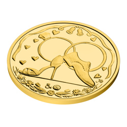Na averzní straně dukátu, který je dílem medailérky Lucie Kroupové, najdete nejen nevěstin střevíček, ale také ženichovu botu a dvojici prstýnků. Reverzní strana je pak vyhrazena pro vyrytí textu, který může mít podobu osobního vzkazu, jmen novomanželů, data svatby, … – fantazii se meze nekladou. Jediným limitem je rozsah textu.