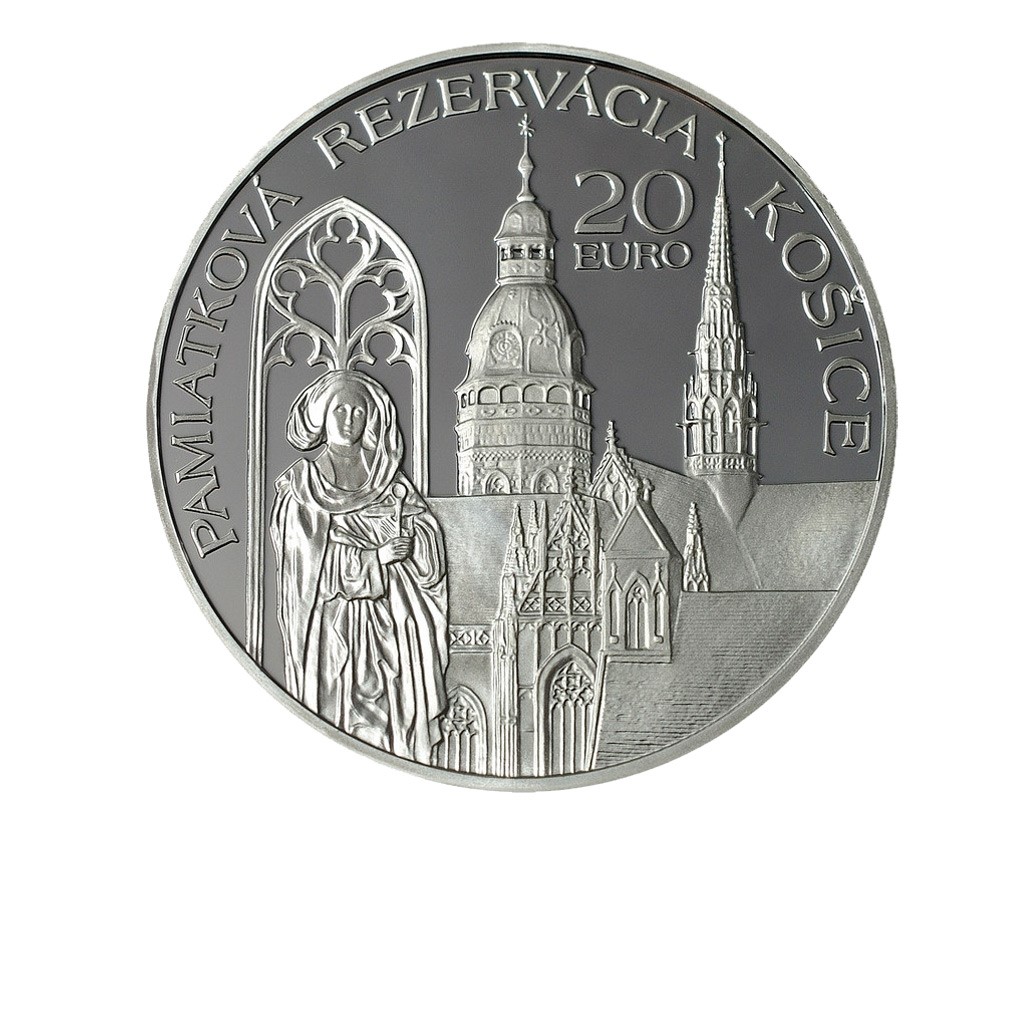 Stříbrná 20 EUR mince Památková rezervace Košice stand