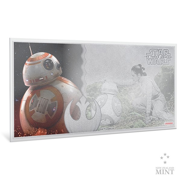 Sedmá epizoda Hvězdných válek s podtitulem Síla se probouzí zahájila novou kapitolu zbožňované filmové ságy. Její postavy, mezi kterými nechybí droid BB-8, se objevují na speciálních mincích v podobě bankovek vyrobených ze stříbra.