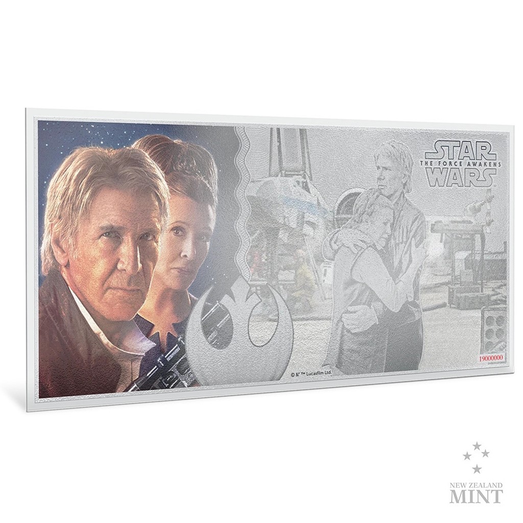 Sedmá epizoda Hvězdných válek s podtitulem Síla se probouzí zahájila novou kapitolu zbožňované filmové ságy. Její postavy, mezi kterými nechybí princezna Leia a Han Solo, se objevují na speciálních mincích v podobě bankovek vyrobených ze stříbra.