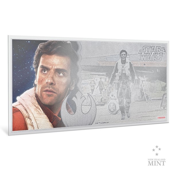 Sedmá epizoda Hvězdných válek s podtitulem Síla se probouzí zahájila novou kapitolu zbožňované filmové ságy. Její postavy, mezi kterými nechybí Poe Dameron, se objevují na speciálních mincích v podobě bankovek vyrobených ze stříbra.
