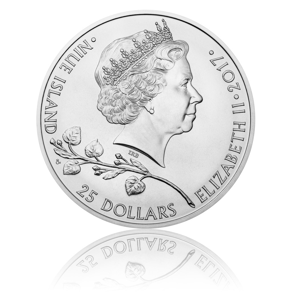 Díky nim se objevila – po boku plamenné orlice na štítu – také na reverzní straně této stříbrné ražby. Oba svatováclavské atributy střeží netradičně realisticky ztvárněný dvouocasý český lev. Výtvarný návrh mince vytvořil medailér Jaroslav Bejvl. Ještě předtím, než své dílo stihl dokončit, však ve věku 75 let zemřel, a tak se rozpracované mince ujal Asamat Baltaev, DiS. Averz náleží portrétu královny Alžběty II., roku emise mince 2017 a nominální hodnotě 25 DOLLARS (NZD) – tedy náležitostem ostrova Niue, který poskytuje licenci pro vydávání investičních mincí České mincovny.
