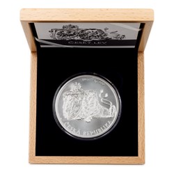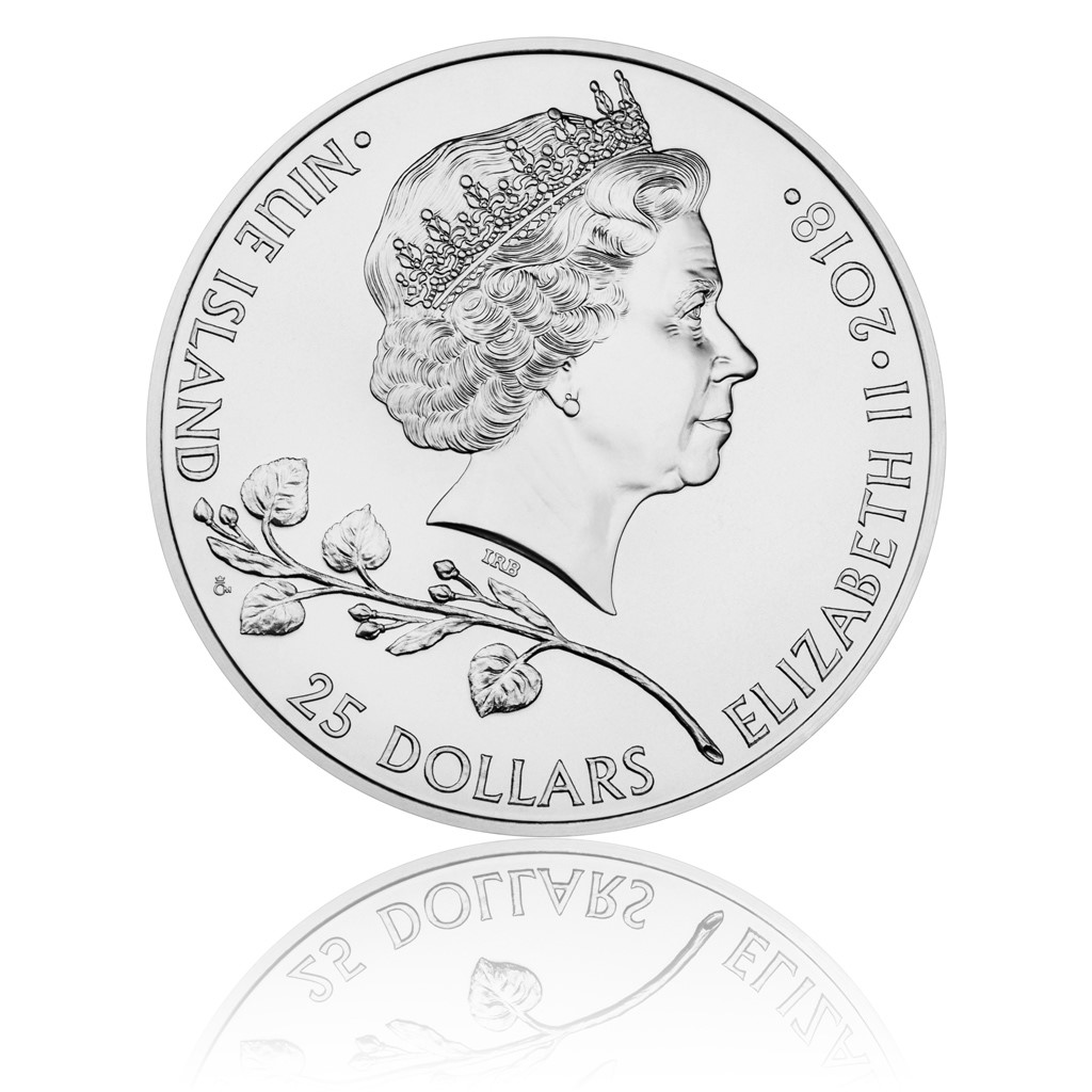 Díky nim se objevila – po boku plamenné orlice na štítu – také na reverzní straně této stříbrné ražby. Oba svatováclavské atributy pak střeží netradičně realisticky ztvárněný dvouocasý český lev. Výtvarný návrh mince vytvořil medailér Jaroslav Bejvl. Ještě předtím, než své dílo stihl dokončit, však ve věku 75 let zemřel, a tak se rozpracované mince ujal Asamat Baltaev, DiS. Averz náleží jménu a portrétu královny Alžběty II., roku emise mince 2018 a nominální hodnotě 25 DOLLARS (NZD) – tedy náležitostem ostrova Niue, který poskytuje zahraniční licenci pro vydávání investičních mincí České mincovny.