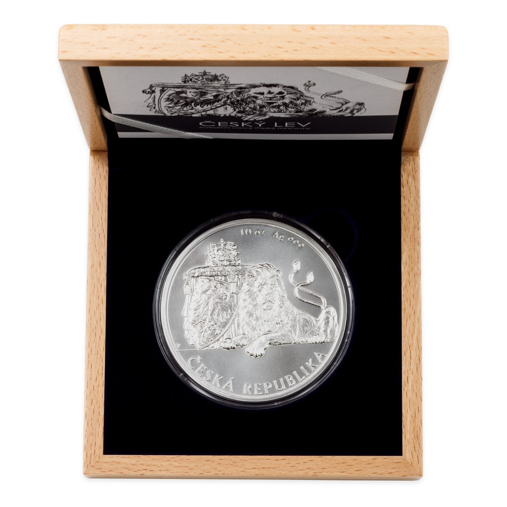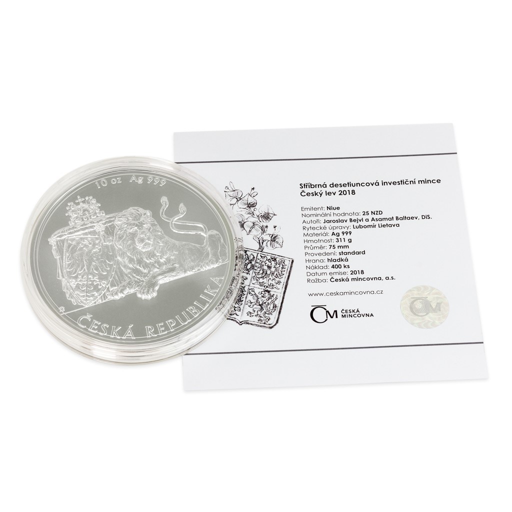 Stříbrná desetiuncová investiční mince Český lev 2018 stand
