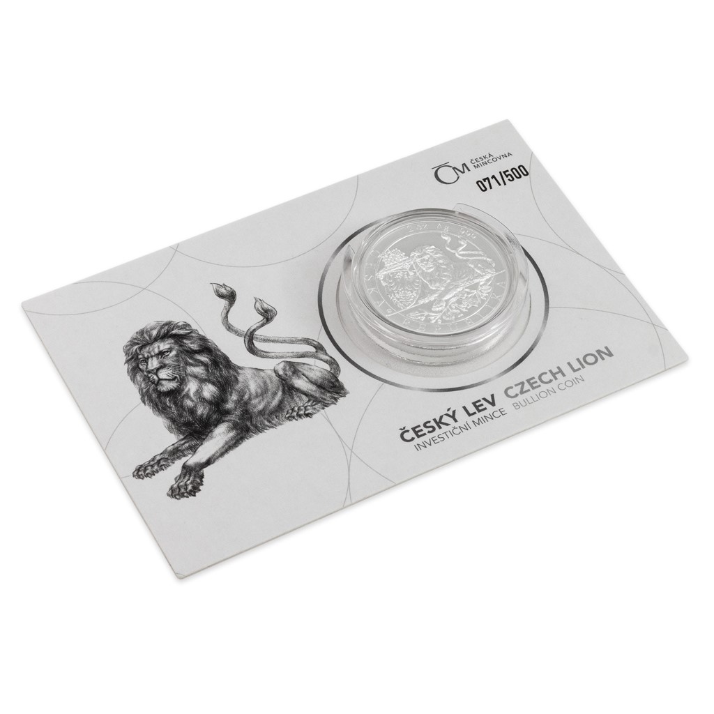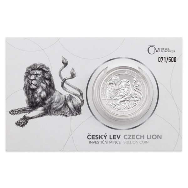 Stříbrná dvouuncová investiční mince Český lev 2019 stand číslovaný