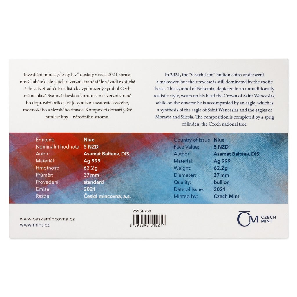 Stříbrná dvouuncová investiční mince Český lev 2021 stand číslovaný