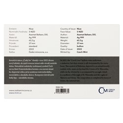 V roce 2022 dostaly všechny varianty investiční mince nový kabátek, ale hlavní myšlenka zůstala zachována. Reverzní straně vévodí český lev v netradičně realistickém podání se Svatováclavskou korunou na hlavě. Averzní strana pak předkládá orlici, která je syntézou svatováclavského, moravského a slezského dravce. Autorem reliéfu je již tradičně medailér Asamat Baltaev, DiS. Protože mince České mincovny vycházejí v licenci zahraničního emitenta, kterým je ostrov Niue, jejich averzní strana nese jeho nezbytné atributy – jméno a portrét královny Alžběty II., nominální hodnotu 5 DOLLARS (NZD) a rok emise 2022.