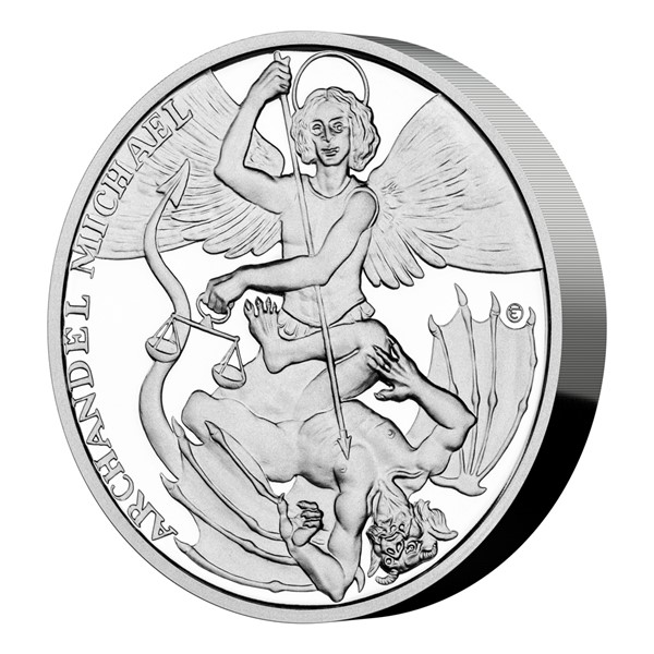 Prvním archandělem, který se objevuje na stříbrné minci České mincovny, je Michael.