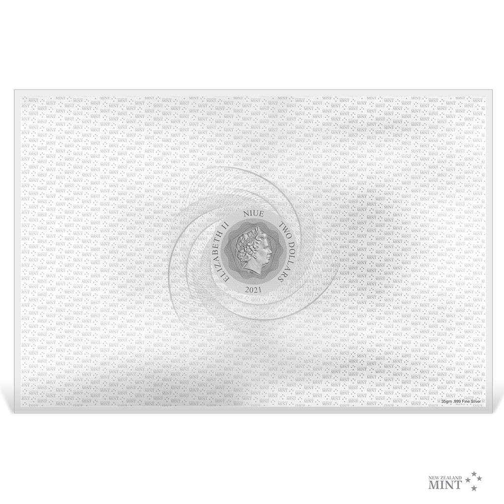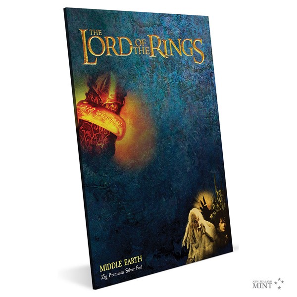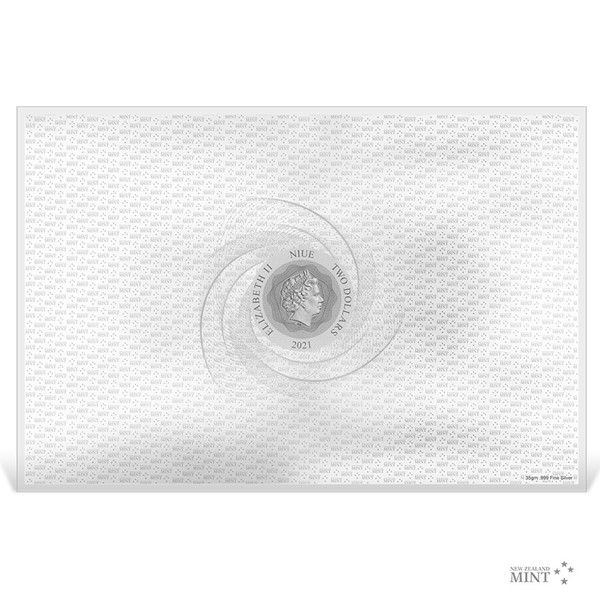 Reverzní strana obdélníkové mince Novozélandské mincovny předkládá barevnou mapu Středozemě, na které najdete místa známá z knih J. R. R. Tolkiena a z velkofilmů, které se jimi inspirovaly. Averz pak nese nezbytné atributy emitenta mince, kterým je ostrov Niue – tedy jméno a portrét královny Alžběty II., nominální hodnotu TWO DOLLARS (NZD) a rok emise 2021.