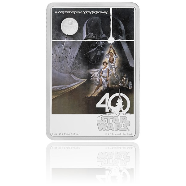 STAR WARS. Přestože prvnímu kosmickému dobrodružství George Lucase v roce 1977 nikdo nevěřil – studia, producenti, dokonce ani sami herci – staly se Hvězdné války kultem, který v historii kinematografie nemá obdoby. Jako připomínka 40. výročí jejich vzniku vychází unikátní stříbrná pamětní mince.