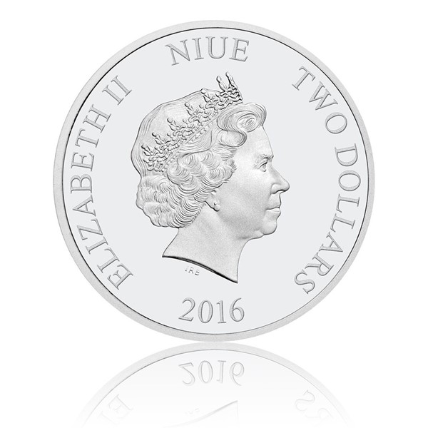 Reverzní strana stříbrné mince zachycuje památnou scénu z úvodu čtvrté epizody s podtitulem Nová naděje. Princezna Leia na palubě vesmírné lodi, která čelí imperiálnímu útoku, ukrývá ukradené plány Hvězdy smrti do paměti droida R2-D2 spolu s holografickým vzkazem pro generála Kenobiho. Averz je věnován náležitostem ostrova Niue, který je emitentem mince: portrétu a jménu panovnice Alžběty II., roku vydání mince 2016 a nominální hodnotě TWO DOLLARS (NZD). Za výtvarným návrhem oficiální licencované mince stojí kreativní tým New Zealand Mint.