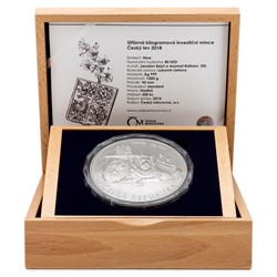 Stříbrná kilogramová investiční mince Český lev 2018 stand