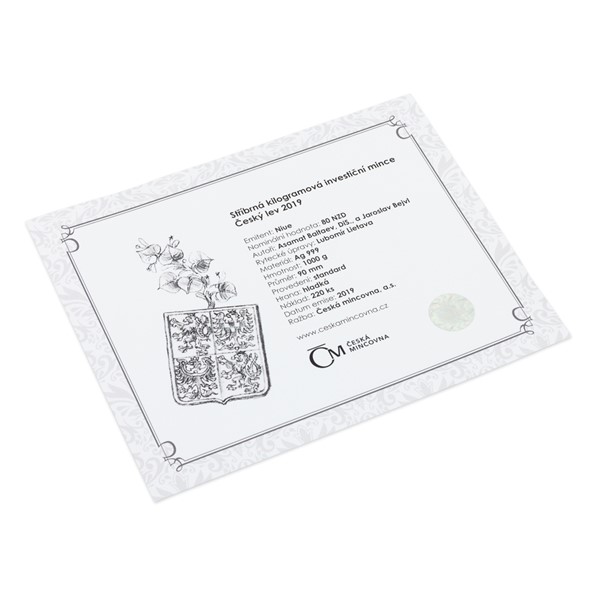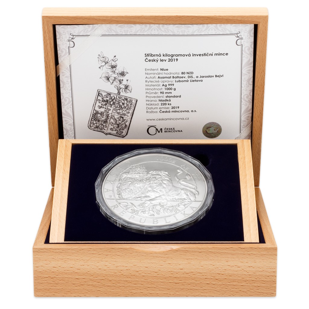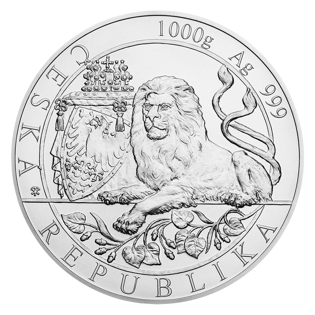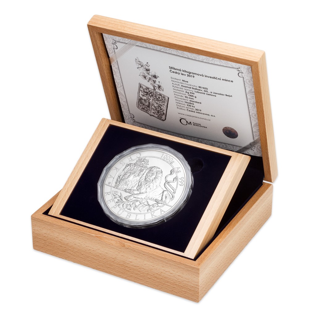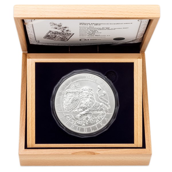 Stříbrná kilogramová investiční mince Český lev 2019 stand