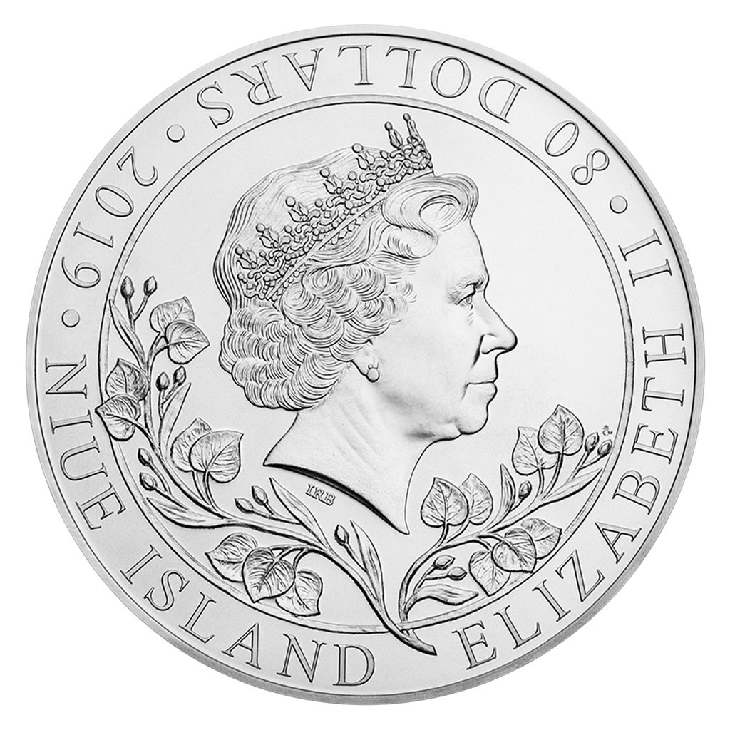 Všechny tyto symboly a ctnosti se objevují na reverzní straně stříbrné mince – Svatováclavská koruna, kterou nechal zhotovit Karel IV., plamenná svatováclavská orlice vyvedená na nýtovaném štítu a zejména nevšedně realisticky zpracovaný český lev. Výtvarná podoba původní kilogramové mince byla dílem zesnulého umělce Jaroslava Bejvla. Ten svou práci bohužel nestihl dokončit, a tak po něm medailérské otěže převzal Asamat Baltaev, DiS. V roce 2019 dostal reliéf kilogramové ražby obměněný kabátek, ale původní myšlenka zůstala zachována. Averzní strana investiční mince České mincovny pak nese lipovou ratolest a atributy ostrova Niue, který je poskytovatelem zahraniční licence pro její ražbu. Jsou jimi jméno a portrét panovnice Alžběty II., letopočet emise 2019 a nominální hodnota 80 DOLLARS (NZD).