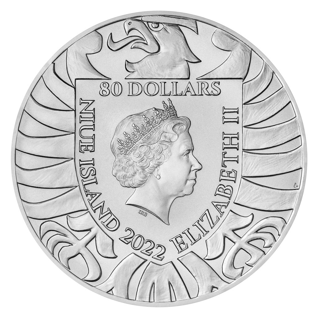 Reverzní straně mince vévodí český lev v netradičně realistickém podání se Svatováclavskou korunou na hlavě. Averzní strana pak předkládá orlici na štítu, která je syntézou svatováclavského, moravského a slezského dravce. Autorem reliéfu je již tradičně medailér Asamat Baltaev, DiS. Protože mince České mincovny vycházejí v licenci zahraničního emitenta, kterým je ostrov Niue, jejich averzní strana nese jeho nezbytné atributy – jméno a portrét královny Alžběty II., nominální hodnotu 80 DOLLARS (NZD) a rok emise 2022.