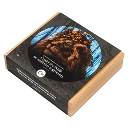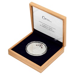 Luxusní dřevěná krabička, která je součástí emise, minci ochrání a zároveň elegantně vystaví.