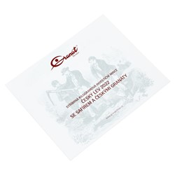 Safír a české granáty, které doplňují ražený reliéf, jsou rozmístěny tak, aby připomínaly kameny ze Svatováclavské koruny. Jejich pravost dosvědčuje certifikát vydaný společností Granát Turnov, který je nedílnou součástí mince.