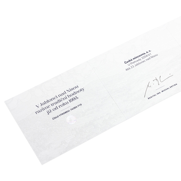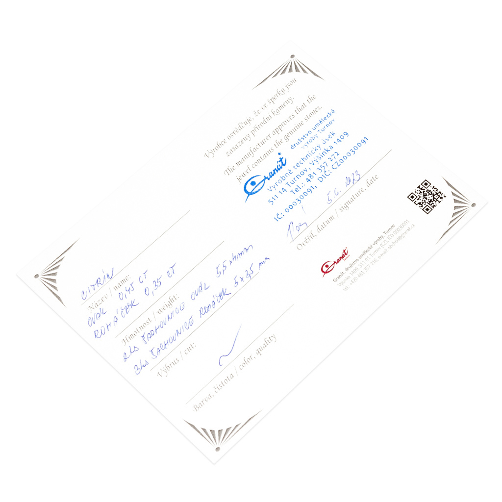 Mince, jejíž emisní náklad čítá pouhých 50 kusů, je uložena do luxusní dřevěné krabičky. Pravost citrínů dosvědčuje certifikát vydaný společností Granát Turnov, který je nedílnou součástí balení.