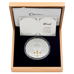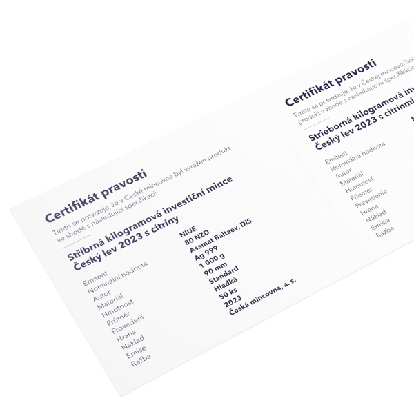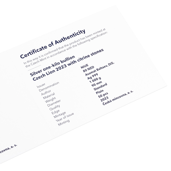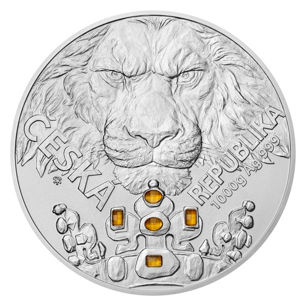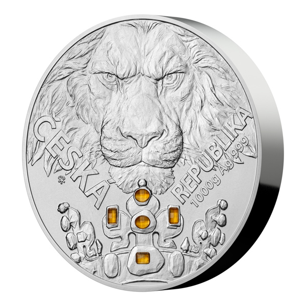 Unikátní edice investiční mince České mincovny Český lev, která je vyražena z jednoho kilogramu ryzího stříbra, je posázena drahými kameny. Citríny, které doplňují ražený reliéf, jsou na minci rozmístěny tak, aby evokovaly kameny Svatováclavské koruny.