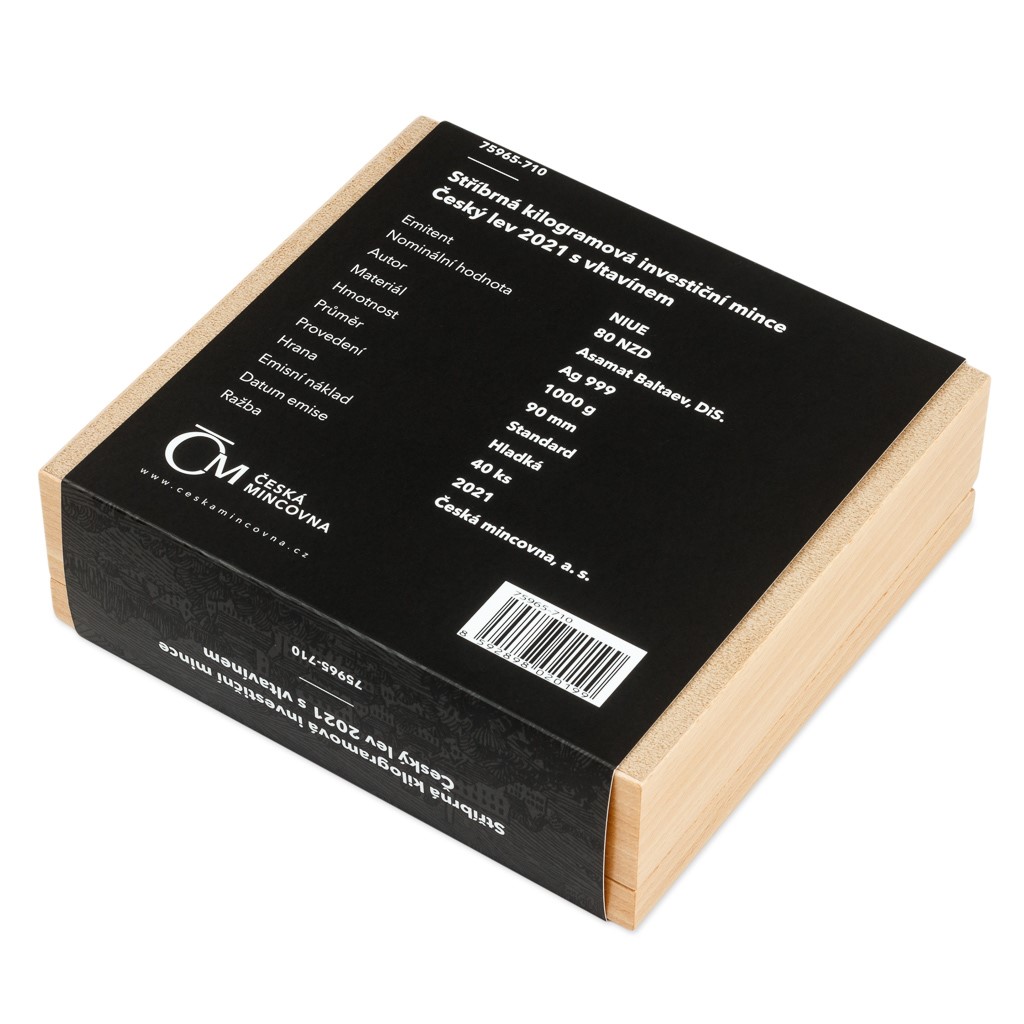 Luxusní dřevěná krabička, která je součástí emise, minci ochrání a zároveň elegantně vystaví.