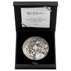 Stříbrná kilogramová medaile 30 let České mincovny a české měny stand