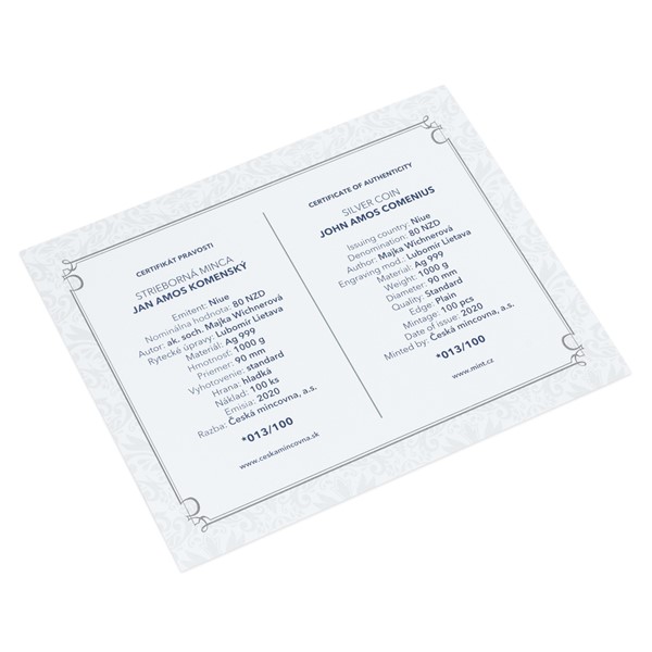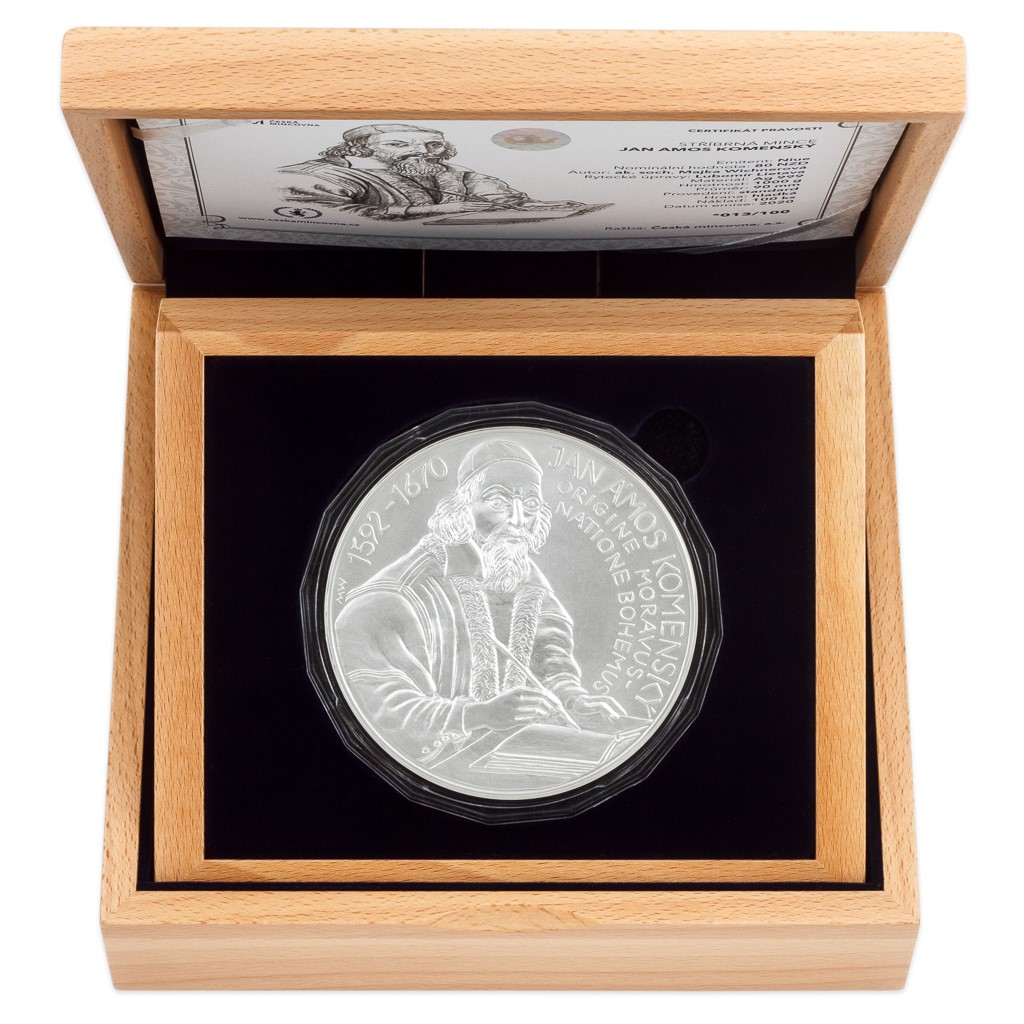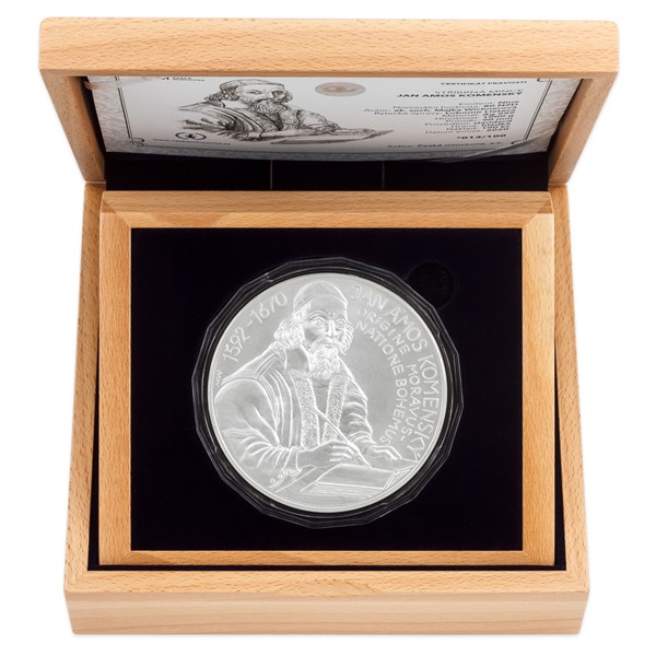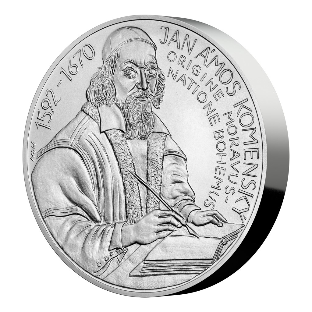 V reliéfu kilogramových stříbrných mincí České mincovny se objevují velikáni českých dějin. V roce 2020 se k nim připojil Jan Amos Komenský, který odešel na věčnost před 350 lety.