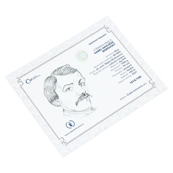 Stříbrná kilogramová mince Karel Havlíček Borovský stand