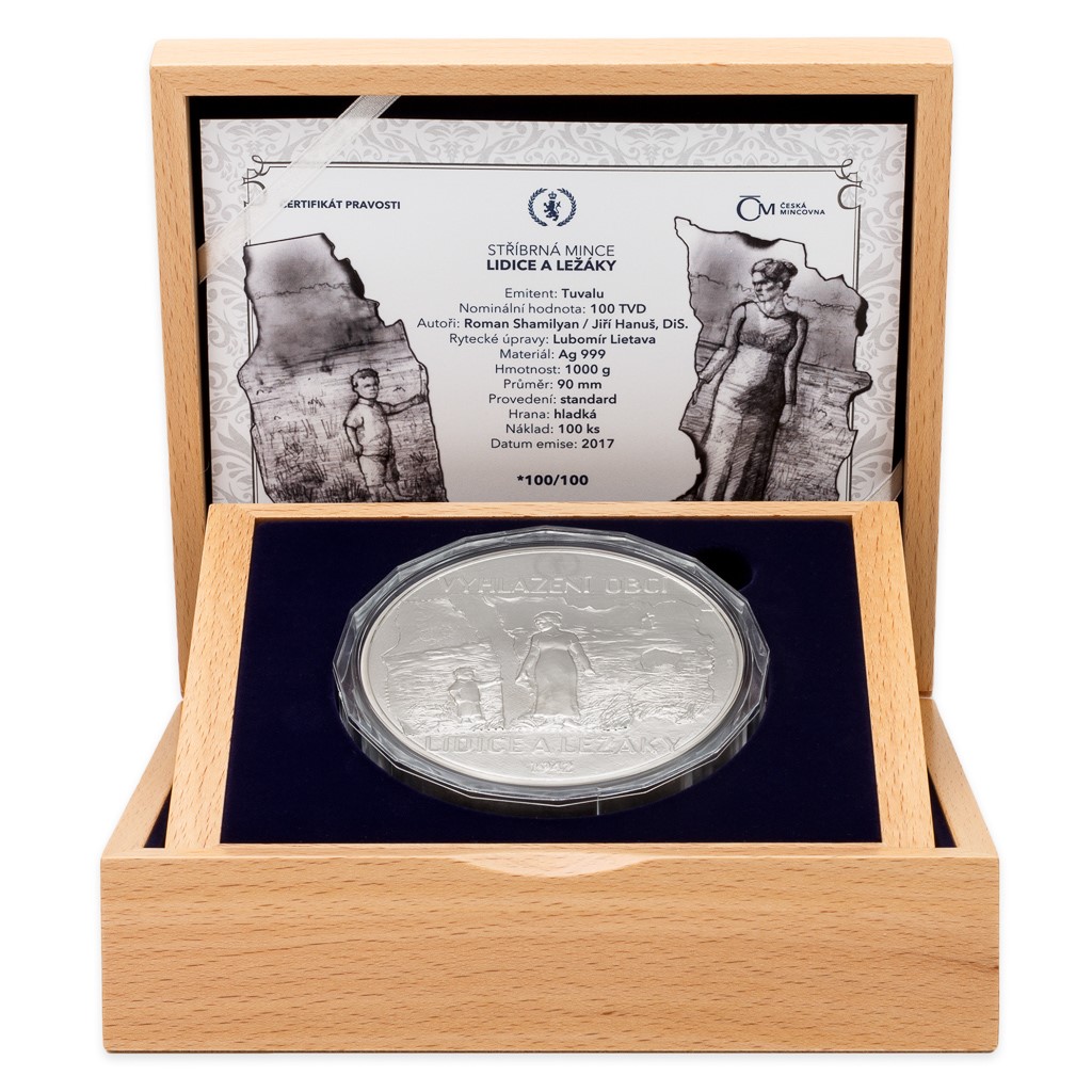 Když roku 1942 českoslovenští výsadkáři ukončili tyranii Reinharda Heydricha, měli za to, že zachránili svůj národ před dalším utrpením z rukou nacistických okupantů. Opak byl bohužel pravdou. Tragédii obcí jménem Lidice a Ležáky připomíná pamětní mince České mincovny vyražená z celého jednoho kilogramu ryzího stříbra.